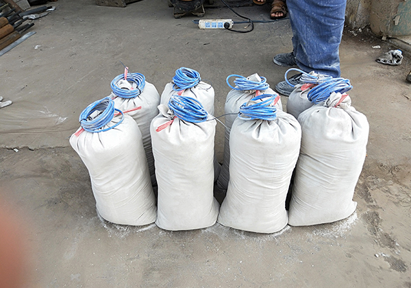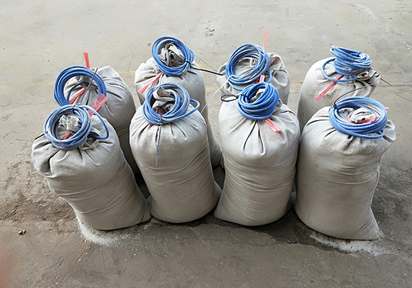 2)將埋有電極的回填料袋,埋入預(yù)先挖好的埋設(shè)坑中,并將周圍土壤壓實(shí),隨后向埋設(shè)地點(diǎn)澆灌適量的淡水,以改善電極連接狀態(tài)。